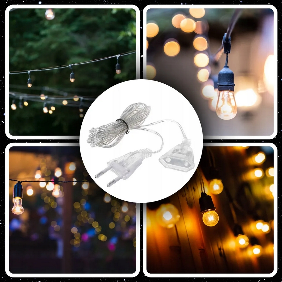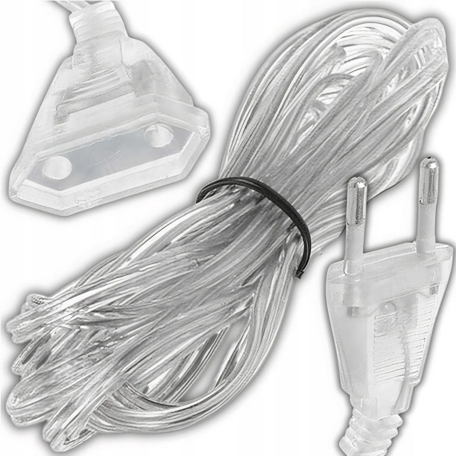 Przewody przedłużacza są transparentne, co sprawia, że są dyskretne i nie przeszkadzają w estetyce dekoracji – pasują do różnych aranżacji świątecznych.