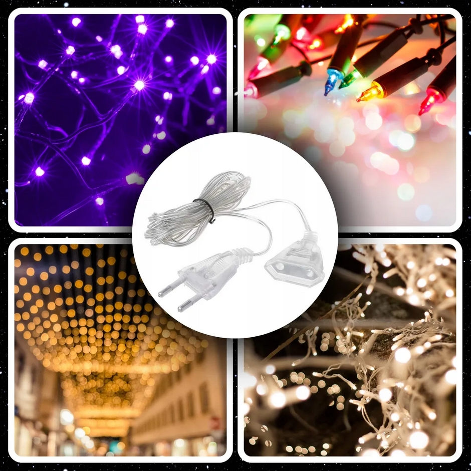 Jest kompatybilny z różnymi rodzajami lampek choinkowych oraz kurtyn, które posiadają płaskie wtyczki.