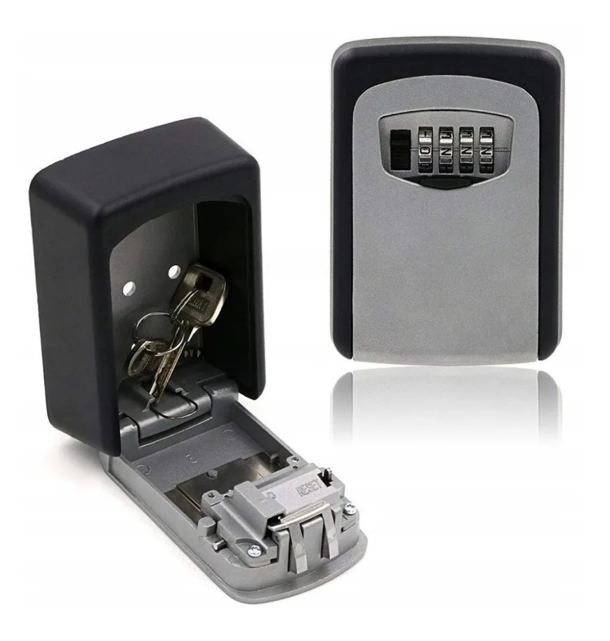 Kompaktowy sejf na klucze zabezpieczony 4-cyfrowym kodem.