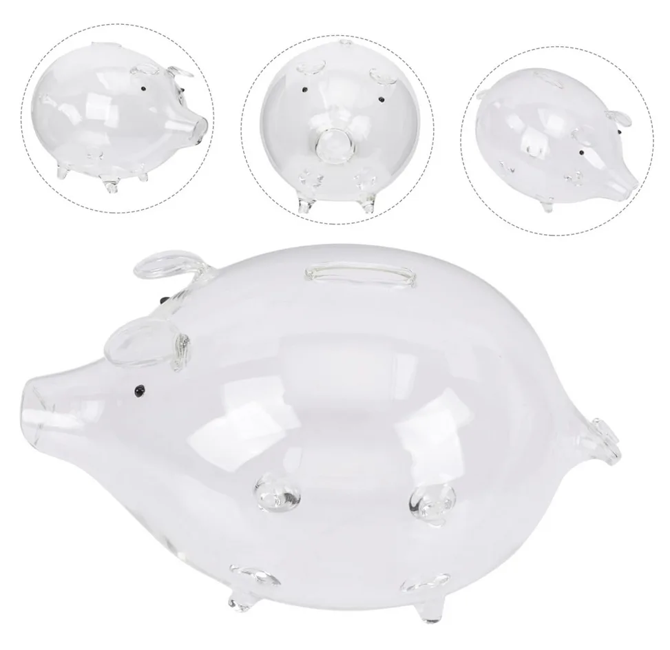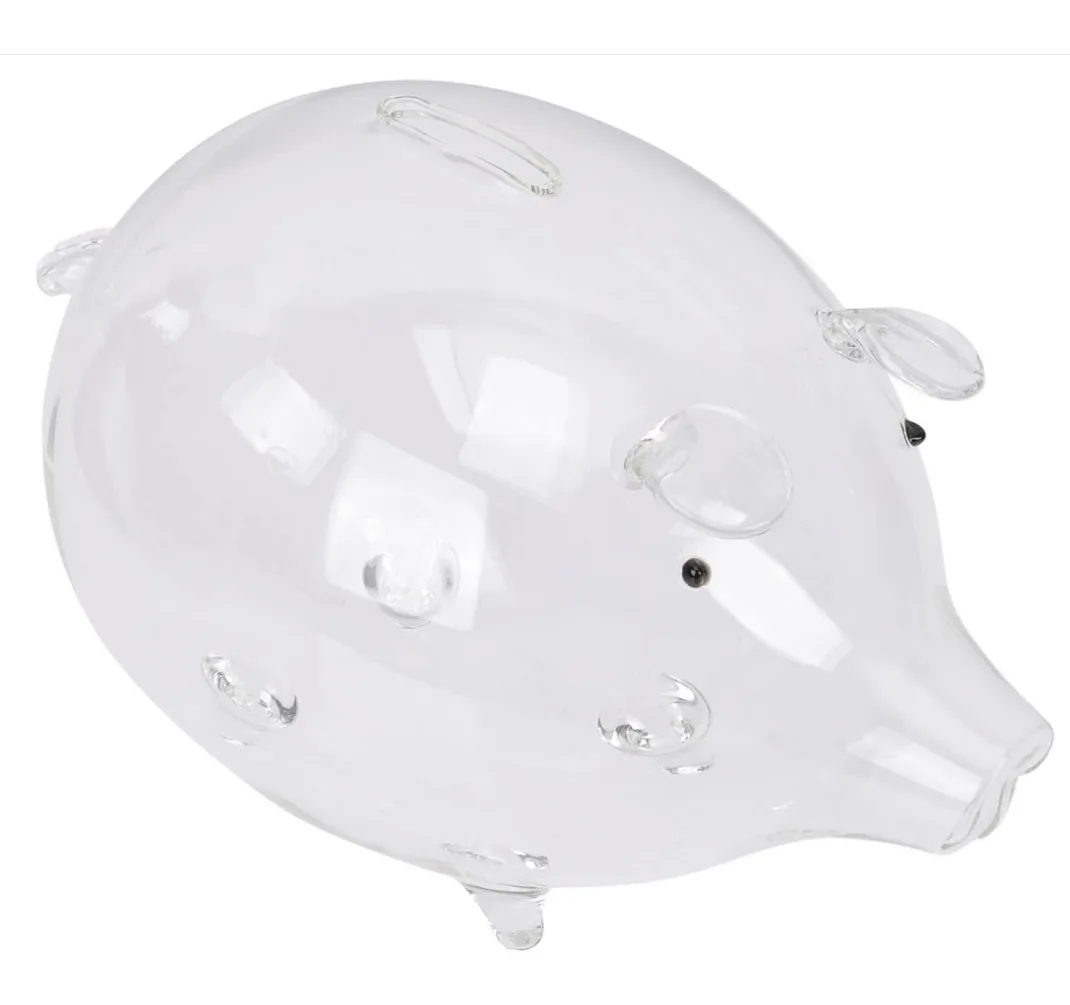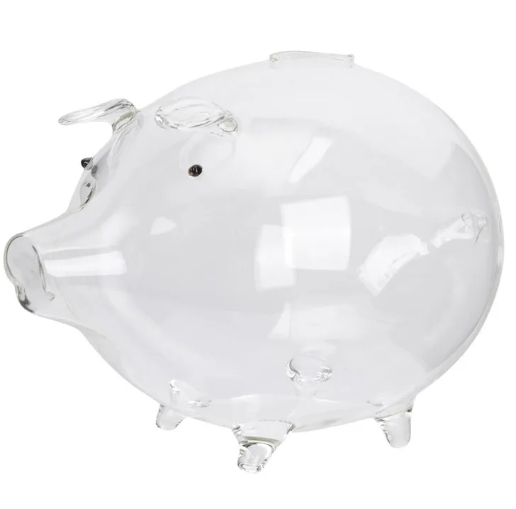 Świnka skarbonka została wykonana z grubego, przezroczystego szkła.