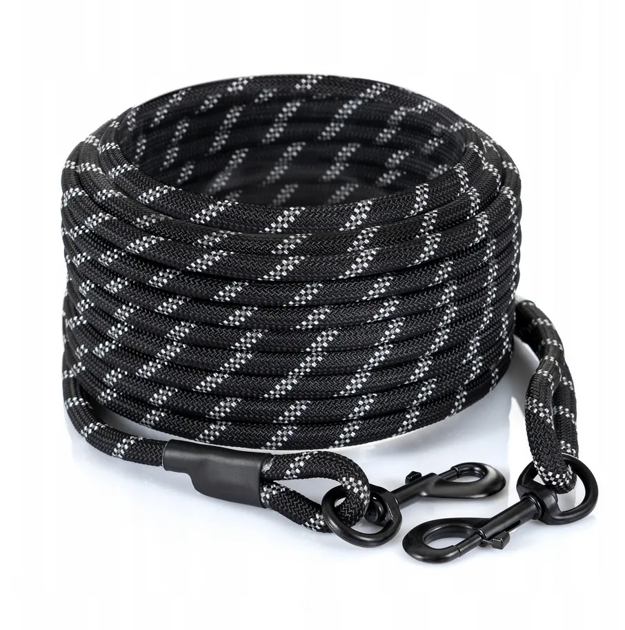 Gruba lina o grubości 10mm zapewni wytrzymałość nawet przy największych psach do 65 kg. Sama wytrzymałość liny to 2000kg.