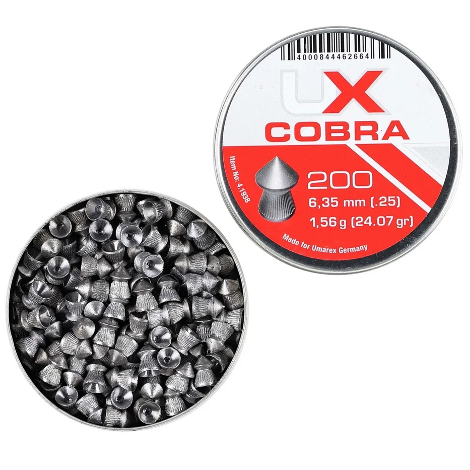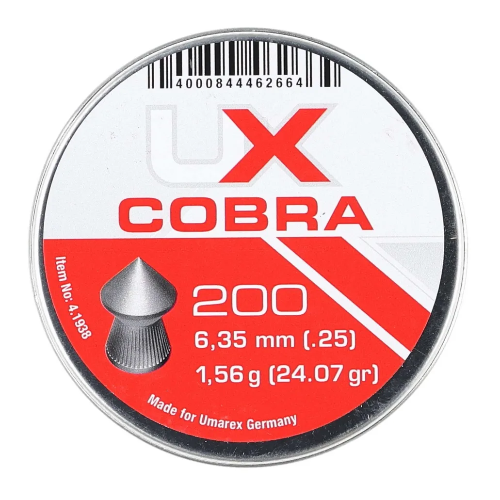 Śrut diabolo Umarex Cobra Pointed Ribbed 6,35mm 200szt to moletowany śrut o szpiczastej główce, która zapewnia wysoką penetrację trafionego celu.