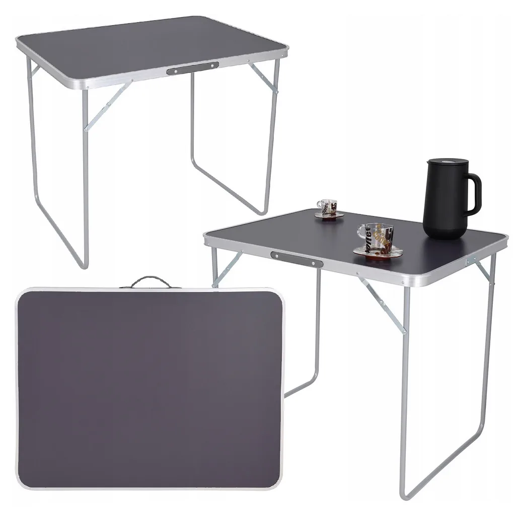 Stolik łatwo się rozkłada, a po złożeniu przyjmuje wygodną formę walizki.