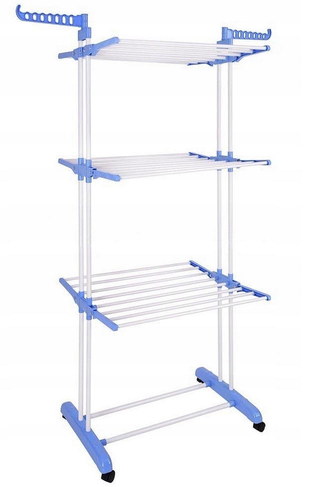 Wysokiej jakości suszarka na pranie to produkt niezbędny w każdym domu. Dzięki niemu w łatwy sposób wysuszysz pranie zarówno w domu jak i na balkonie. Duża ilość półek pomieści nawet do 35 metrów prania a kółka jezdne zapewniają proste manewrowanie. Całość wykonana z solidnych materiałów co zapewnia długi czas eksploatacji.