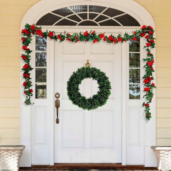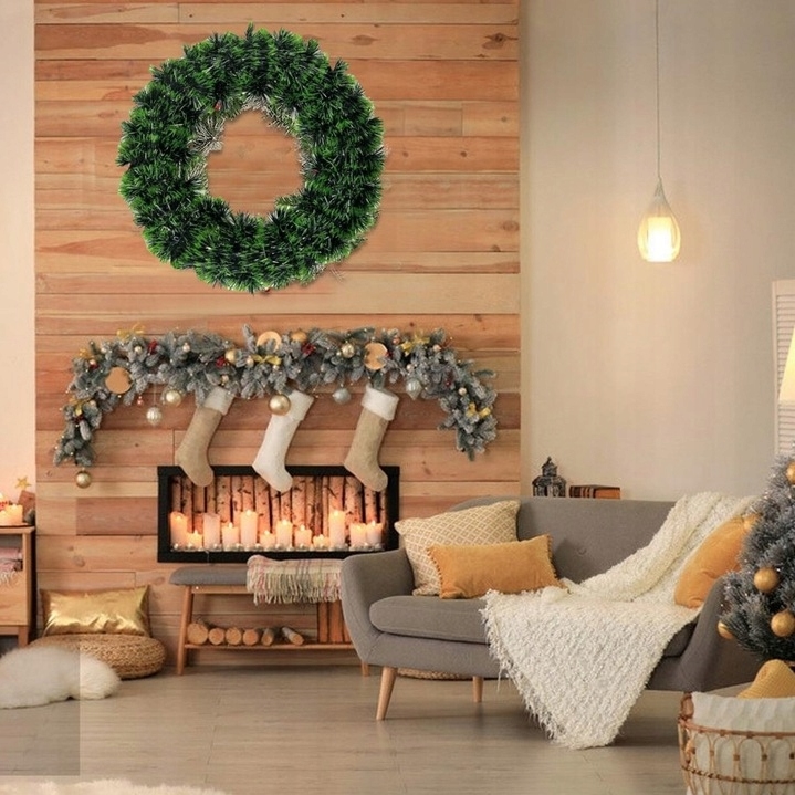 Sztuczny wianek zielony ma bardzo estetyczny wygląd, dlatego będzie doskonałym tłem dla wszelkich dekoracji świątecznych.