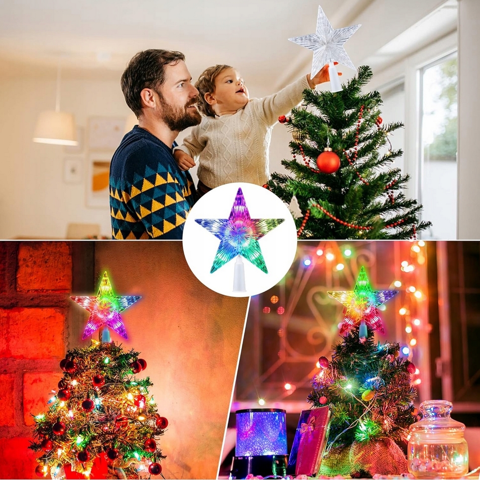 Świecąca gwiazda na choinkę czubek led dekoracja ozdoba świąteczna multikolor 15cm