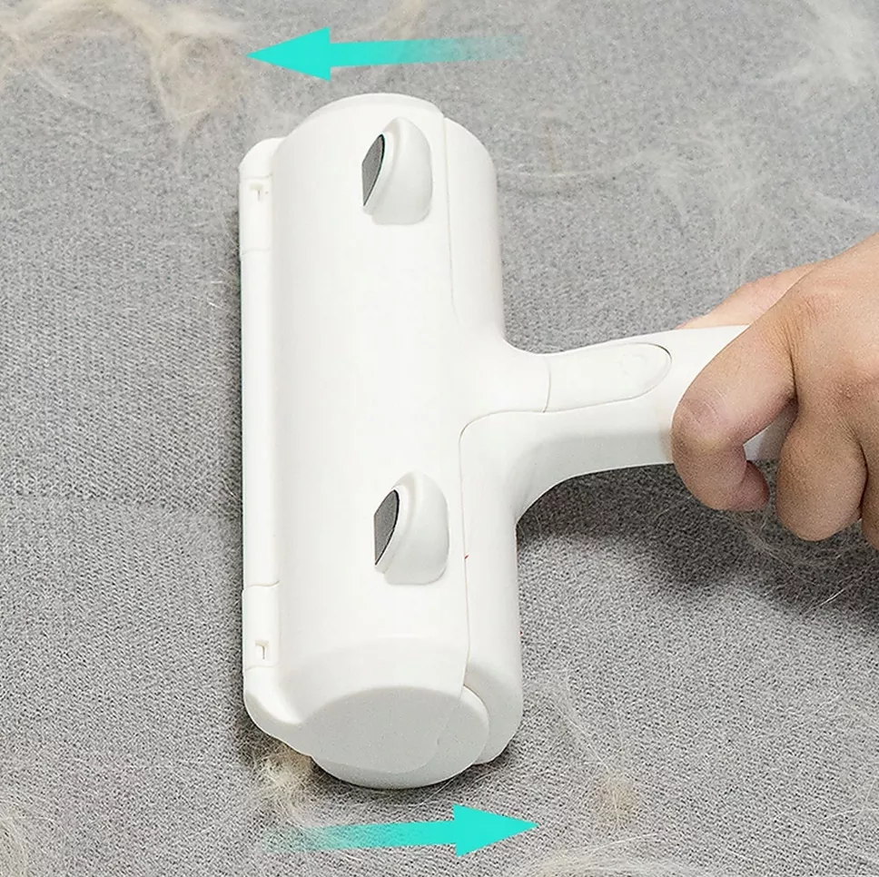 Wystarczy zrobić kilka krótkich pociągnięć do przodu i do tyłu za pomocą wałka, aby uchwycić sierść zwierząt i kłaczki do pojemnika w rolce.