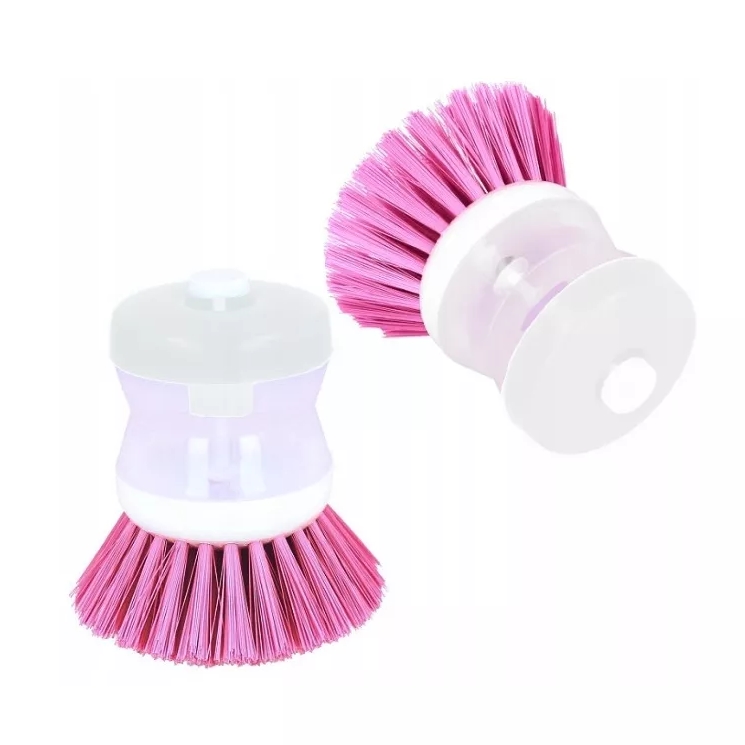 Uniwersalna, praktyczna szczotka do użytku domowego z dozownikiem detergentu np. płynu do naczyń.