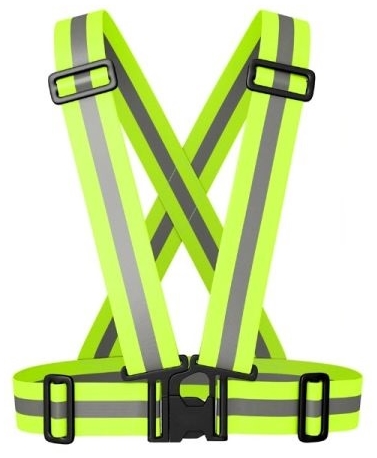 Odblaskowa kamizelka typu szelki zakładana na klatkę piersiową doskonale poprawia (nawet kilkukrotnie) Twoją widoczność na drodze po zmierzchu.