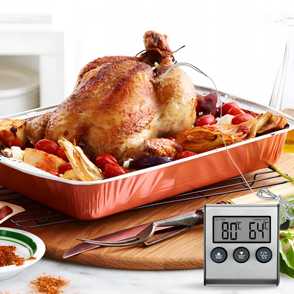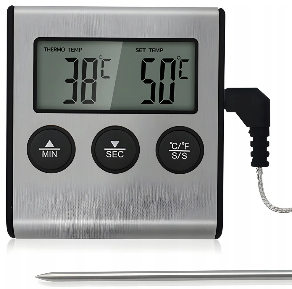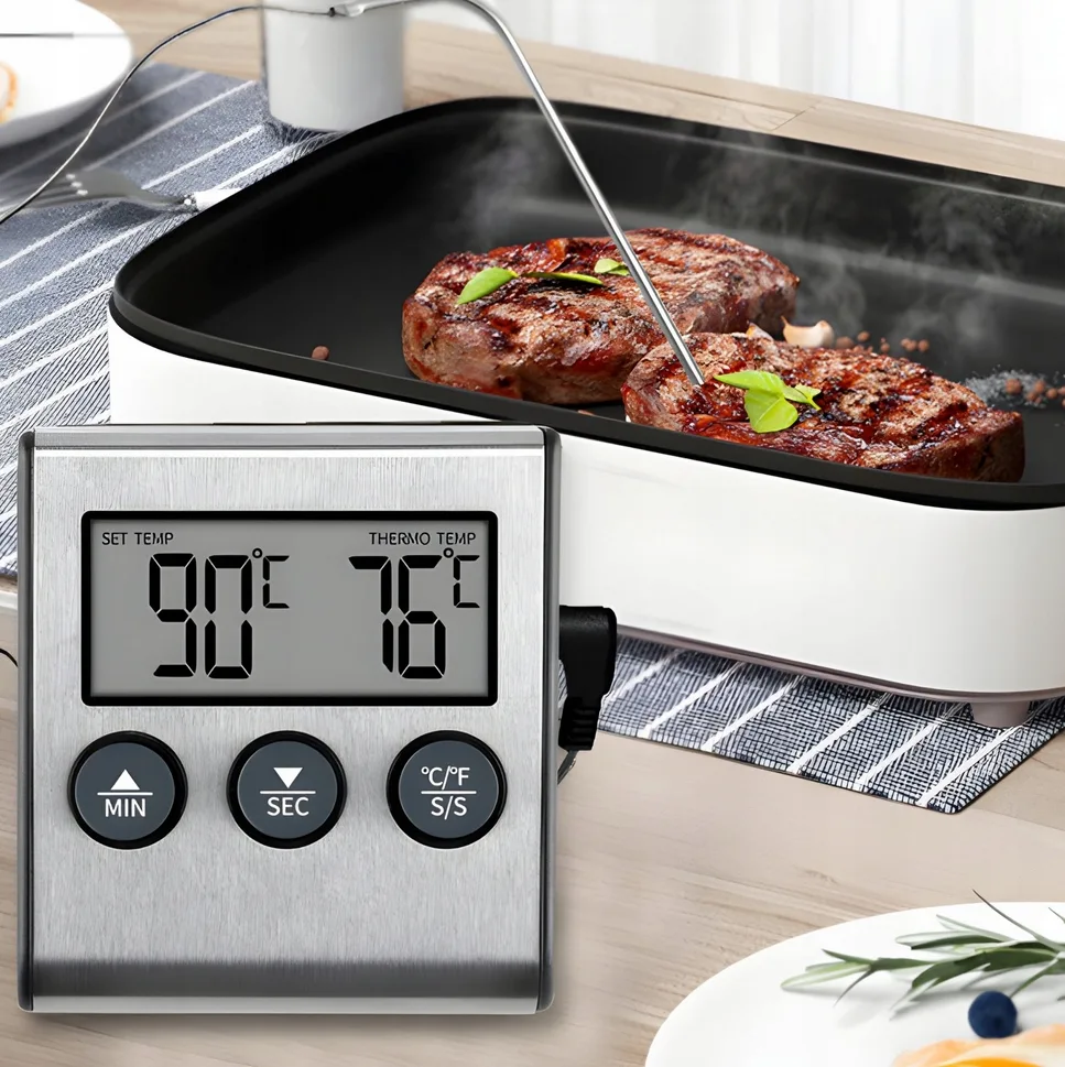 Prosty w obsłudze termometr do sprawdzania temperatury podczas gotowania, wędzenia i pieczenia mięs oraz przygotowywania innych potraw.