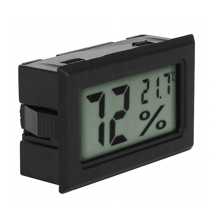 Higrometr przeznaczony do wskazywania poziomu wilgotności i temperatury powietrza w pomieszczeniach, samochodach, akwariach, terrariach.