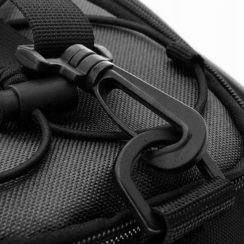 Całość została uszyta z wodoodpornej tkaniny, która zabezpieczy elementy znajdujące się w środku podczas deszczu.