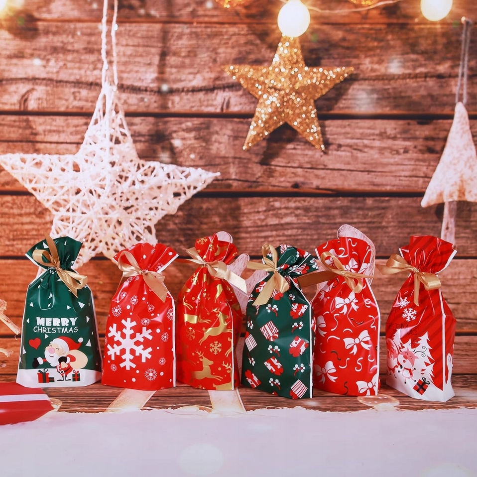 Zestaw 10 woreczków prezentowych jest doskonały do opakowania drobnych upominków, słodkości czy innych niespodzianek na nadchodzące święta.