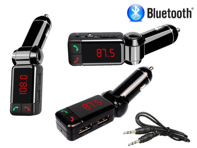 Zaletą naszego modelu jest przede wszystkim jednak wbudowany moduł BLUETOOTH, który umożliwia wykorzystanie transmitera jako zestawu głośnomówiącego. Wystarczy włączyć w telefonie moduł bluetooth, zaznaczyć na liście dostępnych urządzeń nasz transmiter i od tej pory można rozmawiać za pomocą mikrofonu wbudowanego w transmiter a jako głośniki będą służyły głośniki samochodowe. Połączenie obsługiwać można za pomocą przycisków na obudowie transmitera lub z samego telefonu. Niesamowita wygoda dla osób dzwoniących podczas jazdy samochodem.