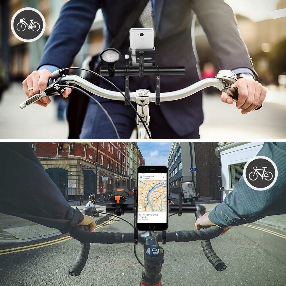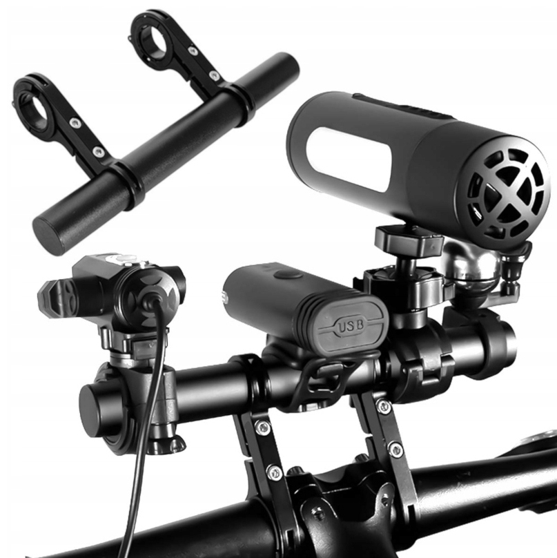 Urządzenie zapewnia dodatkowe miejsce do montażu świateł, uchwytów na telefon, prędkościomierzy i innych urządzeń na kierownicy rowerowej.