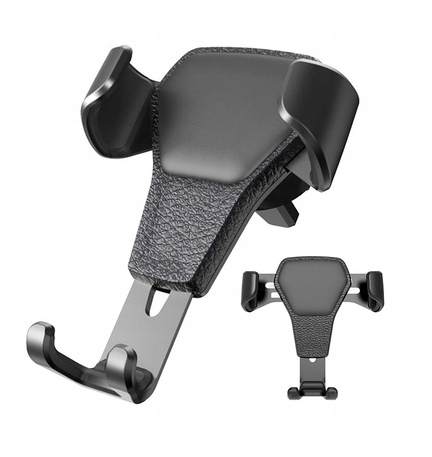 Uniwersalny grawitacyjny uchwyt samochodowy na telefon montowany do kratki nawiewu, który pozwala na solidne umiejscowienie telefonu.