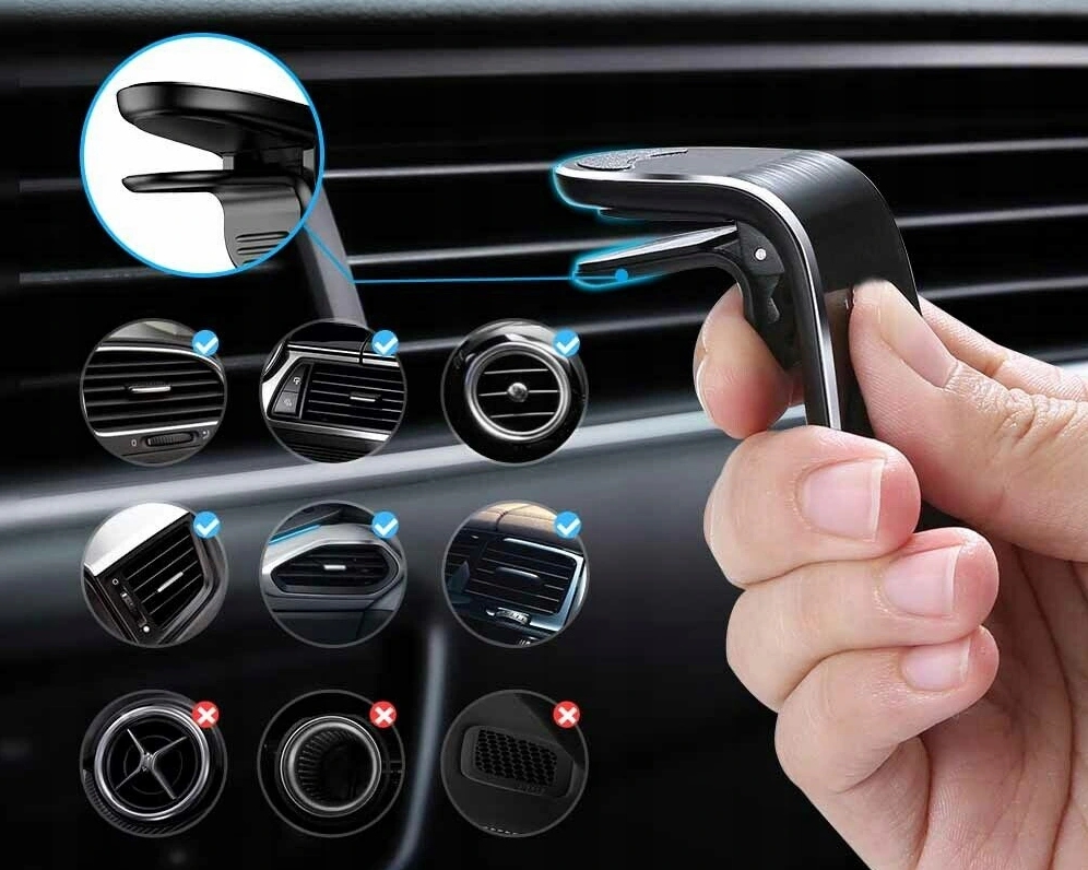 Magnetyczny uchwyt uniwersalny na kratkę nawiewu dedykowany do każdego urządzenia mobilnego.