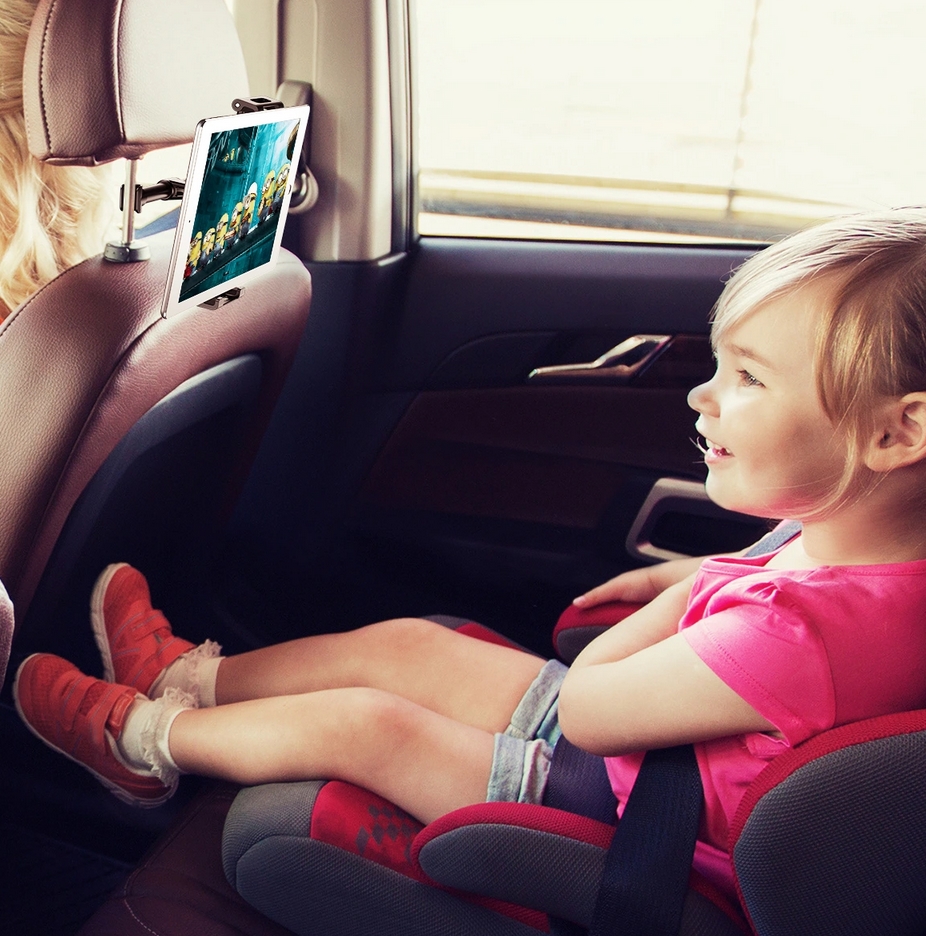 Ten poręczny uchwyt do telefonu/tabletu na zagłówek jest najlepszym rozwiązaniem, aby zapewnić pasażerom rozrywkę podczas długich, nudnych podróży samochodem