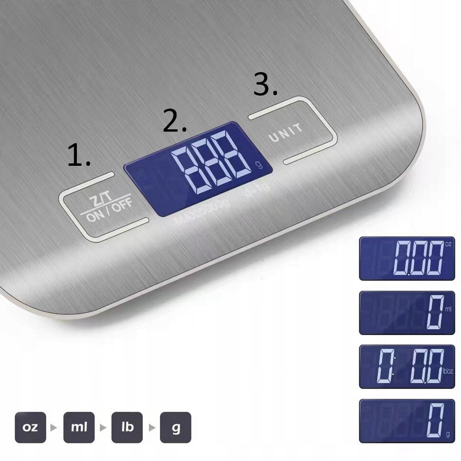 - Jednostki miary: g/ oz/ ml/ lb