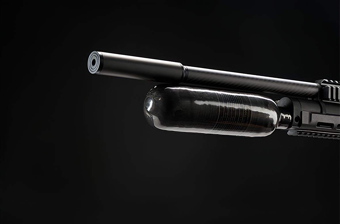 Model ten wyposażono w karbonową butlę o pojemności 350 cm³, która jest lżejsza od standardowych kartuszy aluminiowych, a jednocześnie zapewnia większą liczbę strzałów na jednym napełnieniu.