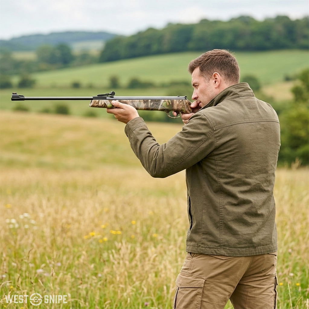 WESTSNIPE® B11P camo to klasyczna wiatrówka sprężynowa typu break-barrel (łamana), zaprojektowana z myślą o połączeniu dobrej mocy, precyzji oraz tradycyjnego wyglądu.
