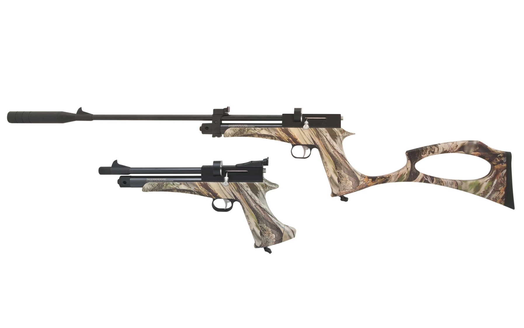 System wiatrówki WESTSNIPE® CP2 camo został osadzony na estetyczną polimerową osadę w malowaniu leśnym oraz możliwość rozbudowania do postaci karabinka.