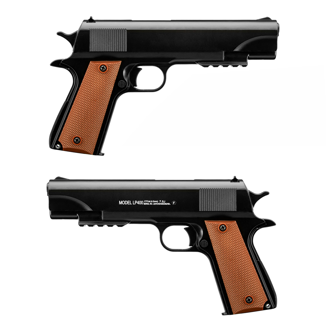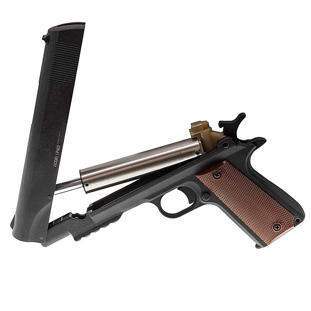 WESTSNIPE® LP400 to jednostrzałowy pistolet pneumatyczny nawiązujący stylistyką do kultowego Colta 1911.