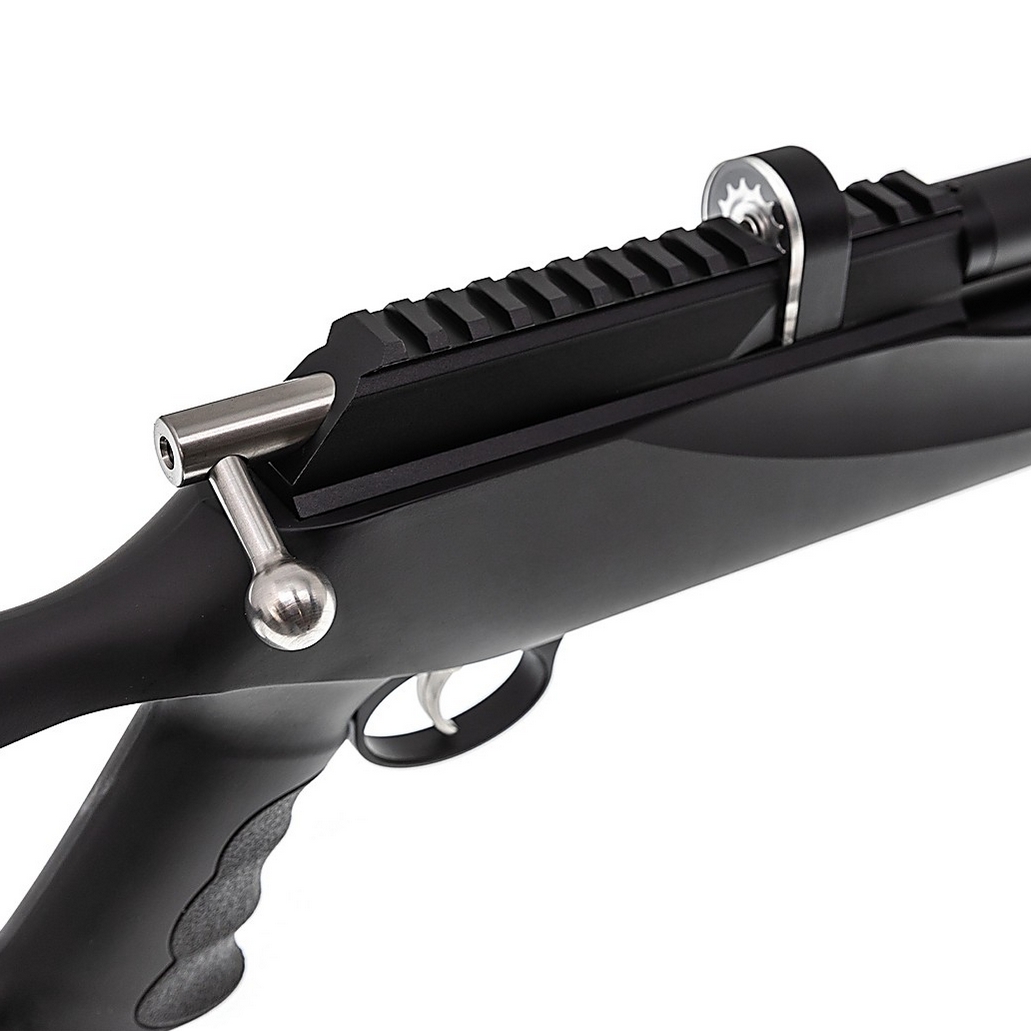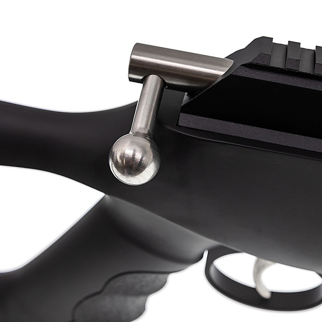 Przeładowanie odbywa się za pomocą wygodnej dźwigni bolt-action, a dwustopniowy metalowy spust posiada manualny bezpiecznik umieszczony w pobliżu języka spustowego.