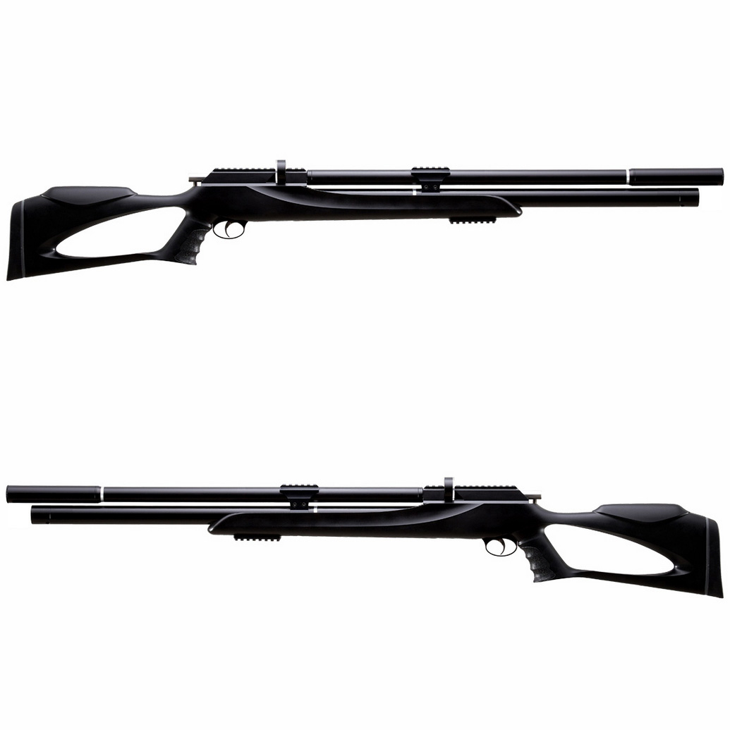 Równolegle do lufy biegnie kartusz powietrza o dużej pojemności 245 cc i ciśnieniu roboczym 250 bar, zapewniając stabilne parametry strzału.
