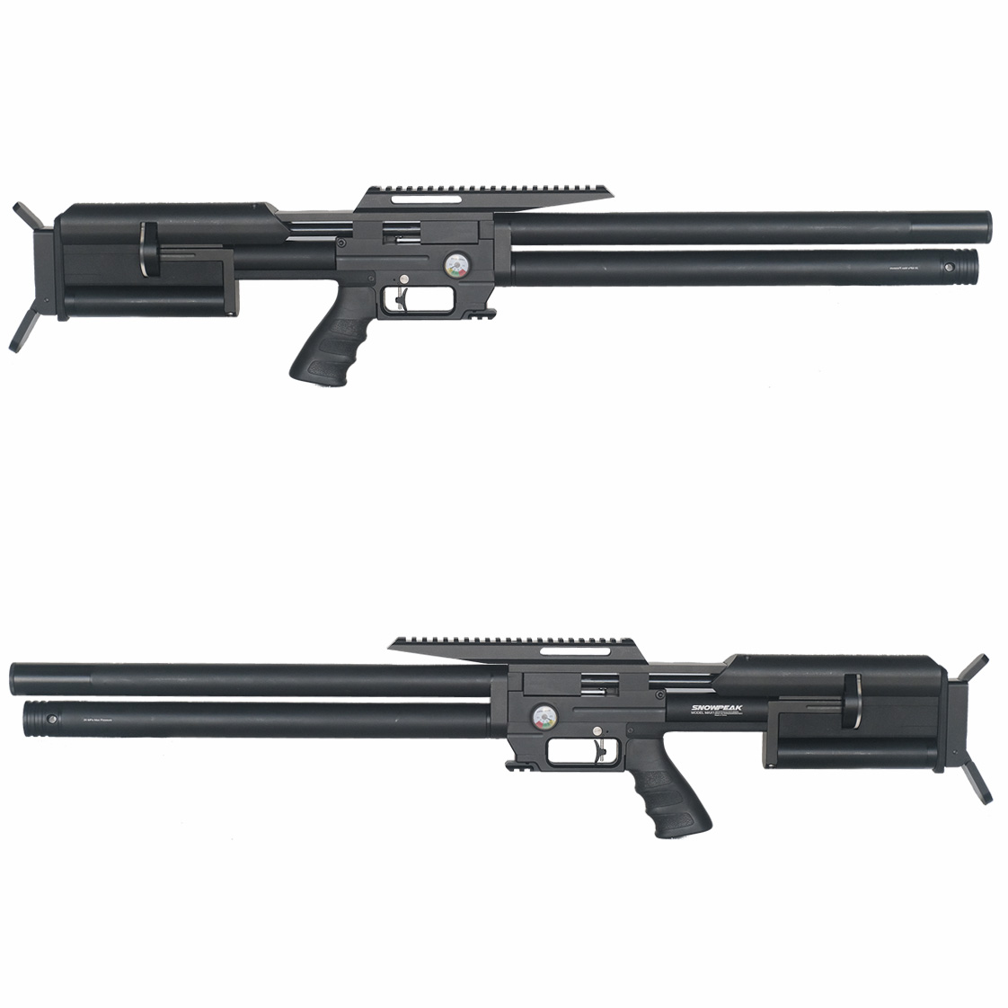 Zastosowanie podwójnego plenum oraz dużego kartusza o pojemności 550 cm³ napełnianego do 300 barów zapewnia stabilną prędkość wylotową i wysoką powtarzalność strzałów.