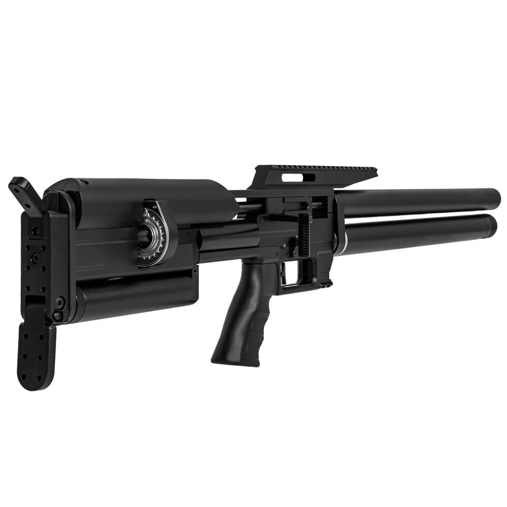 Zastosowanie podwójnego plenum oraz dużego kartusza o pojemności 550 cm³ napełnianego do 300 barów zapewnia stabilną prędkość wylotową i wysoką powtarzalność strzałów.