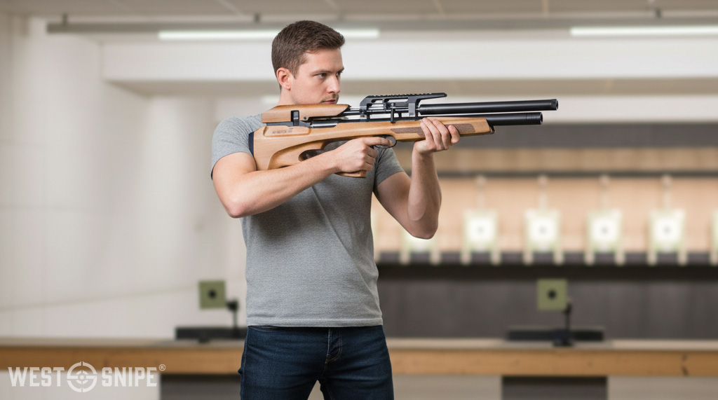 WESTSNIPE® P35X to nowoczesna, kompaktowa wiatrówka PCP w układzie bullpup, która łączy wysoką energię strzału z precyzją i klasycznym wyglądem drewnianej kolby typu thumbhole.