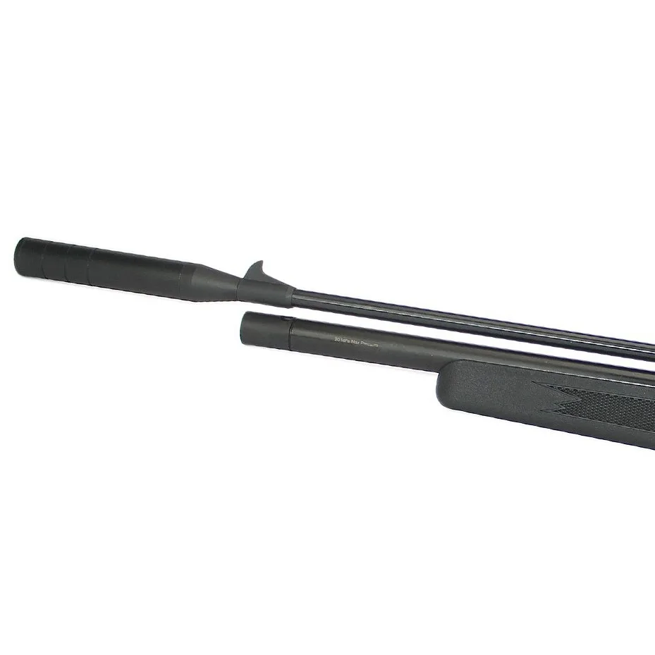 Wiatrówka wyróżnia się ciekawym wzornictwem i zbiornikiem o pojemności 100 cc z maksymalnym ciśnieniem roboczym 200 BAR.