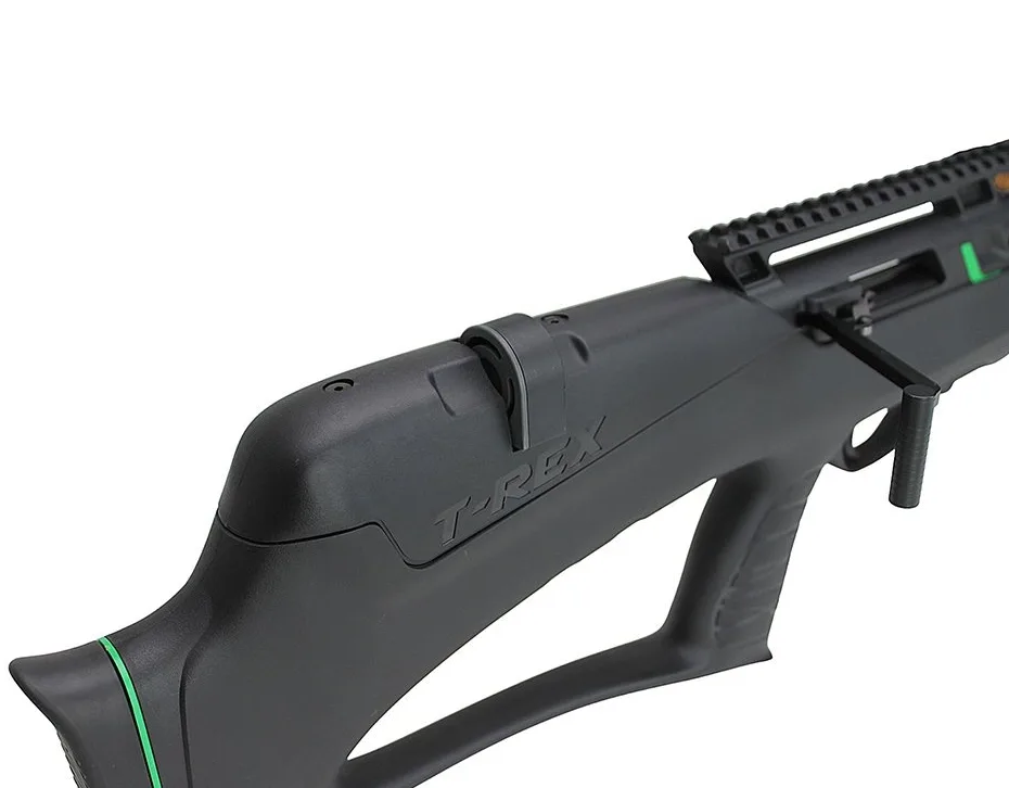 Model WESTSNIPE® T-REX w układzie BULLPUP osadzono w polimerowej kolbie o gładkiej powierzchni z dodatkiem elementów antypoślizgowych w miejscach chwytu dla zapewnienia maksymalnej stabilności podczas strzelania.