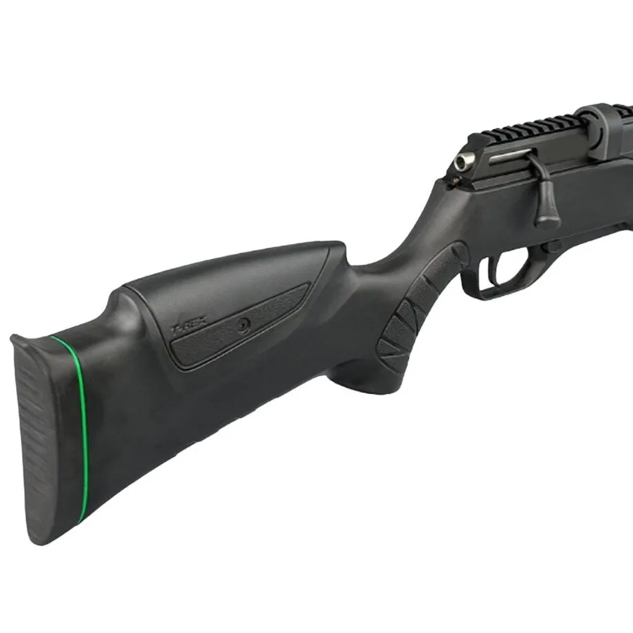 Model WESTSNIPE® T-REX osadzono w polimerowej kolbie o gładkiej powierzchni z dodatkiem elementów antypoślizgowych w miejscach chwytu dla zapewnienia maksymalnej stabilności podczas strzelania.