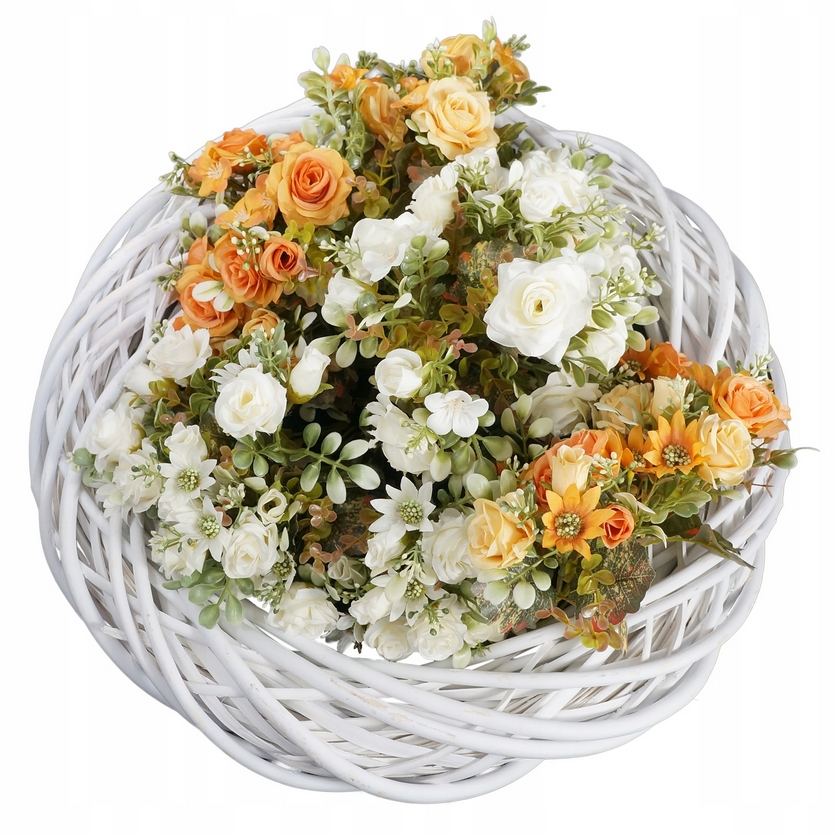 Do wianka można przytwierdzić (np. za pomocą kleju na gorąco) dowolnego rodzaju rośliny sztuczne oraz różnorodne dodatki.