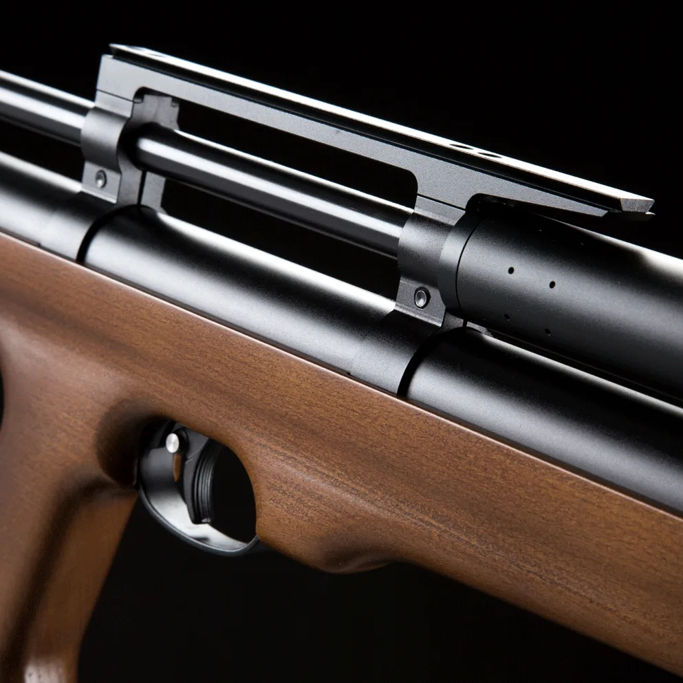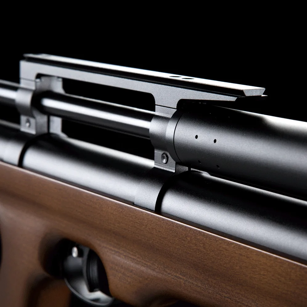 Wiatrówka wyróżnia się ciekawym wzornictwem i dużym zbiornikiem o pojemności 265 cc z maksymalnym ciśnieniem roboczym 250 BAR.