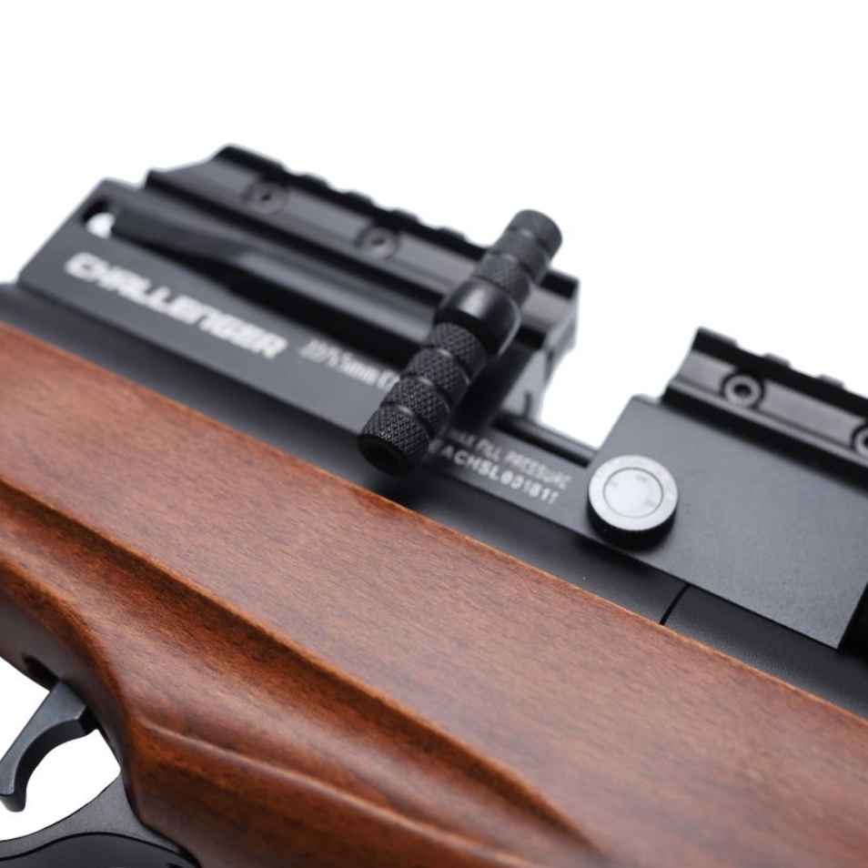 Model Challenger NOVA wyposażony jest w szynę 22 mm Dovetail, dzięki której możemy zamontować lunetę lub kolimator, który umożliwi oddawanie szybkich celnych strzałów.