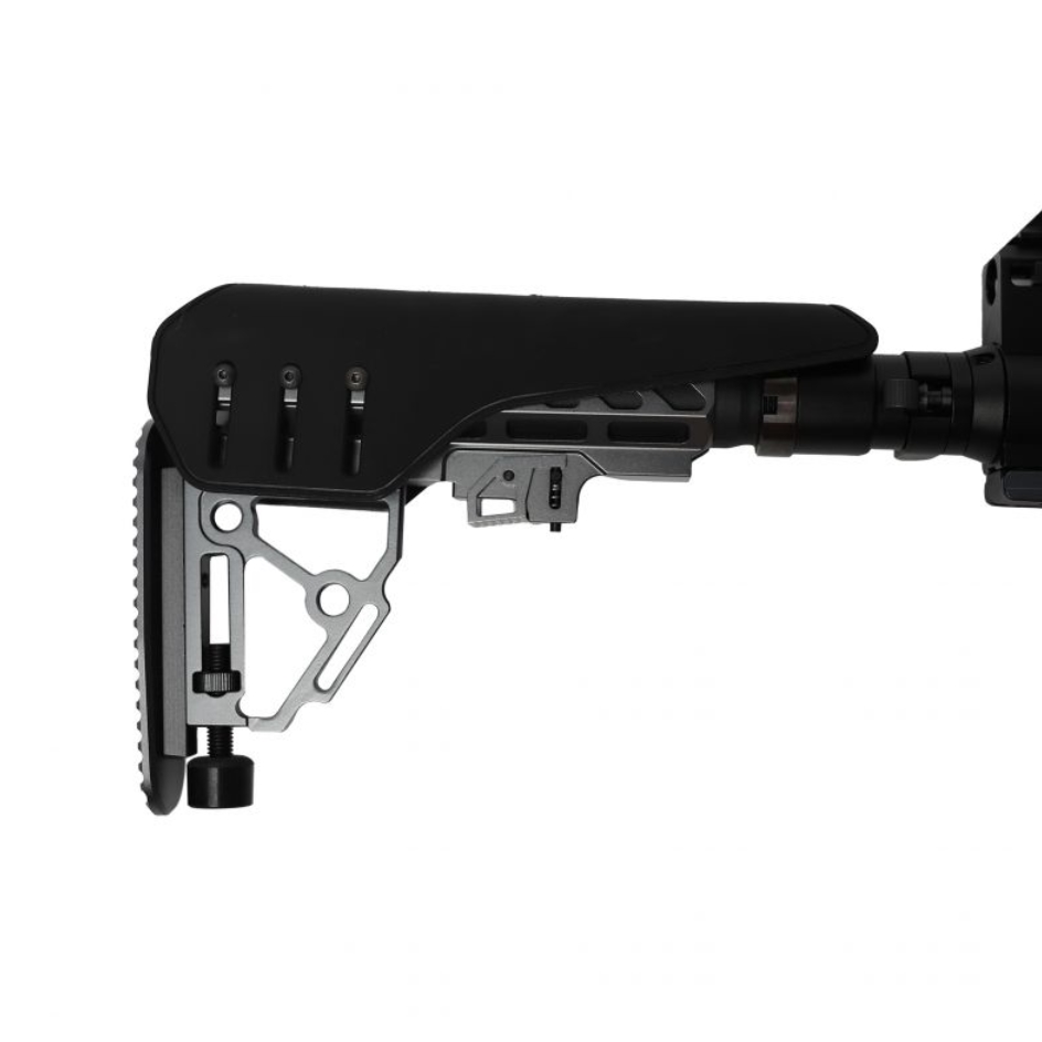Kolbę możemy wydłużać i chować, oraz podnosić i obniżać bakę, dzięki czemu idealnie dopasujemy do swojego wzrostu, tak aby było nam jak najbardziej komfortowo oddawać strzały.