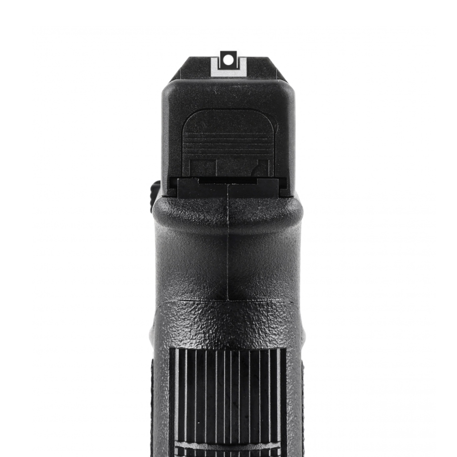 Podobnie jak w wersji bojowej, wiatrówka Glock 19 gen 3, ma metalowy zamek oraz polimerowy szkielet, którego antypoślizgowe fakturowanie jest zgodne z oryginałem.