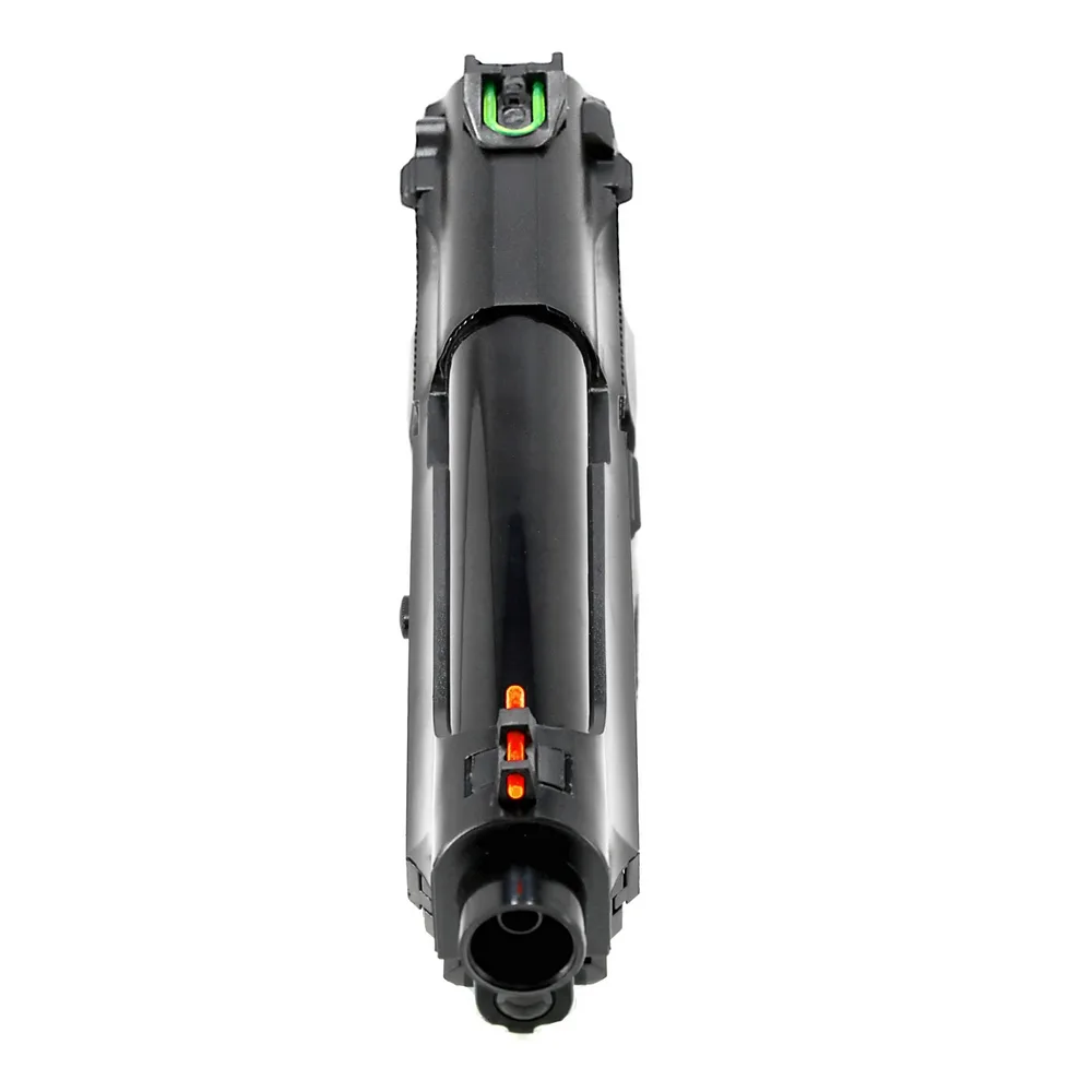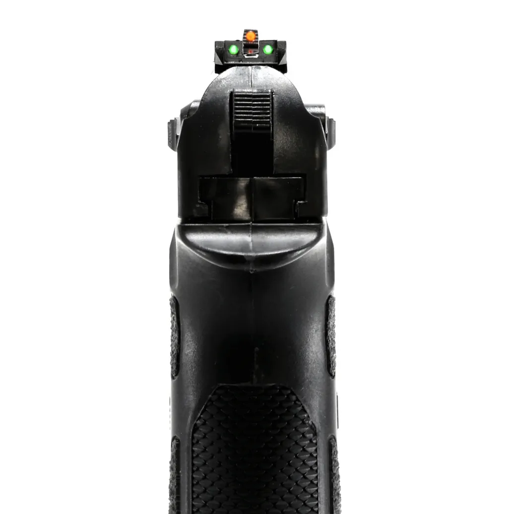 Za ergonomię, stabilność chwytu oraz komfort strzelania odpowiadają okładziny o antypoślizgowym teksturowaniu, oraz profilowana anatomicznie rękojeść.