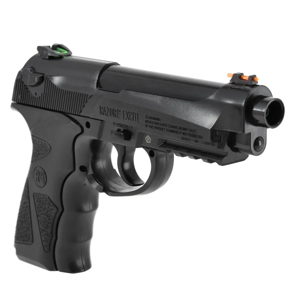 RazorGun Excite 4,5mm to pistolet wiatrówkowy na CO2 w kalibrze 4,5 mm oraz mocy wylotowej poniżej 17J przeznaczony do strzelania rekreacyjnego.