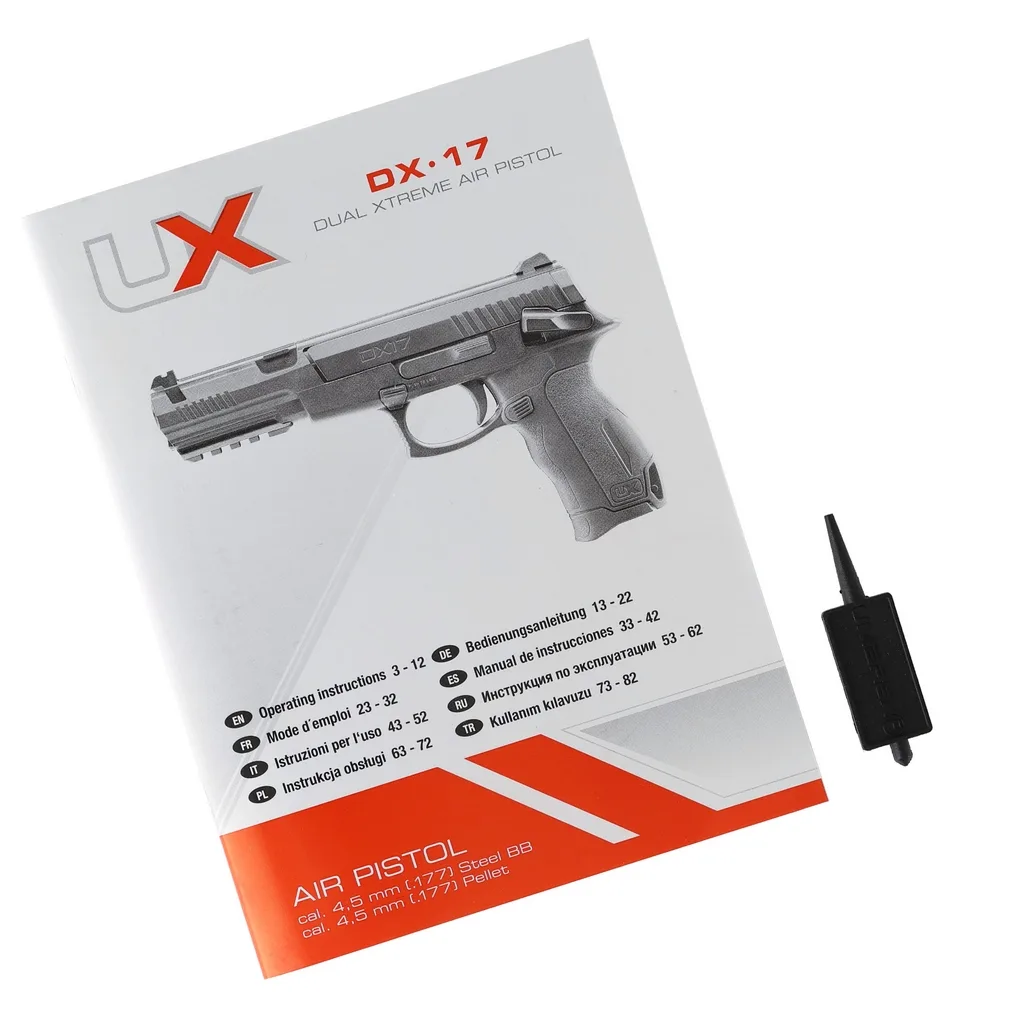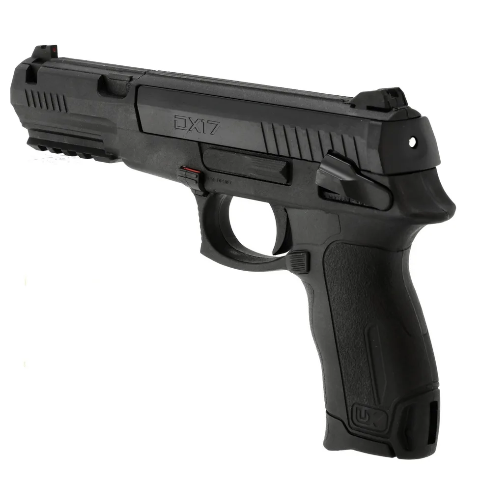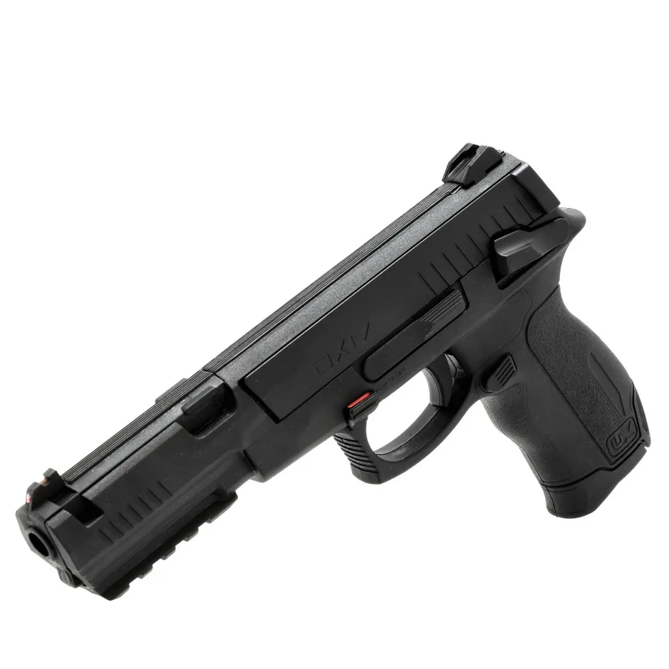 Umarex DX17 to pistolet wiatrówkowy o klasycznym napędzie tłokowo-sprężynowym w kalibrze 4,5 mm oraz mocy wylotowej poniżej 17J przeznaczony do strzelania rekreacyjnego.