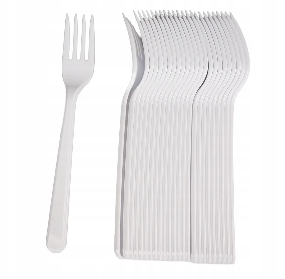 Widelec wielokrotnego użytku plastikowy biały gruby 1szt