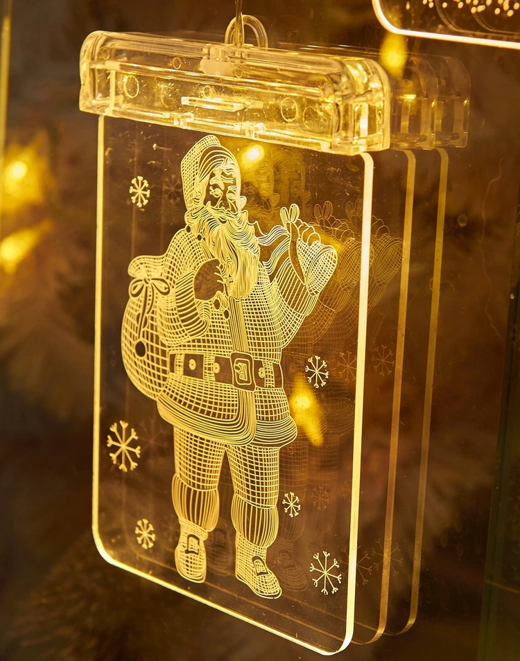 Witraż led 3d wiszący lampki świąteczne śnieżynka na baterie