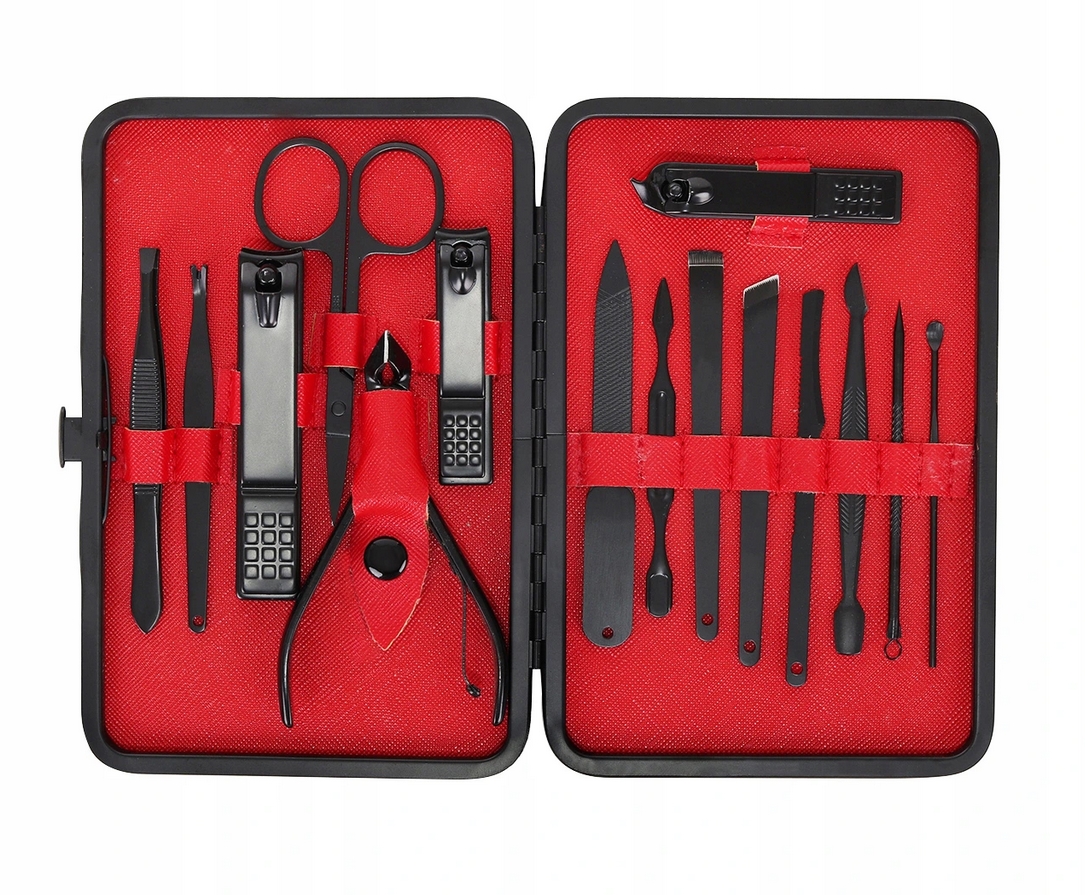 Kompletny zestaw składa się z 16 elementów – etui + 15 narzędzi służących do pielęgnacji dłoni, stóp, a także twarzy.