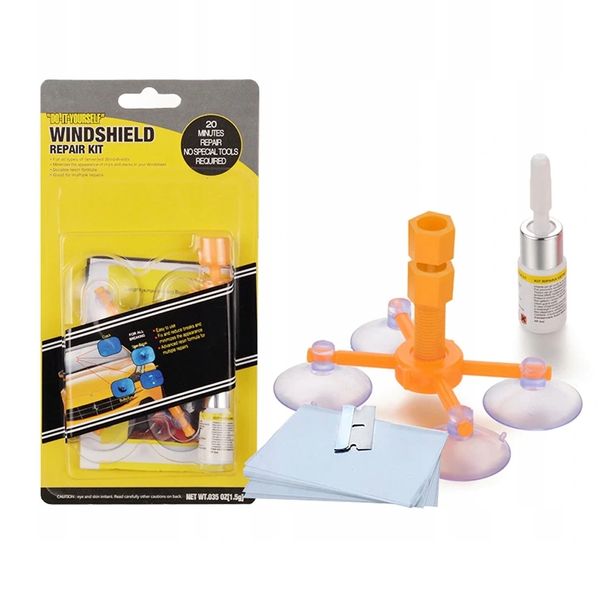Zestaw do naprawy uszkodzeń i pęknięć szyb samochodowych – umożliwia samodzielnie naprawić szybę w aucie.