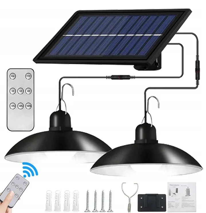 Żyrandol podwójny lampa solarna wisząca sufitowa zewnętrzna pilot outlet